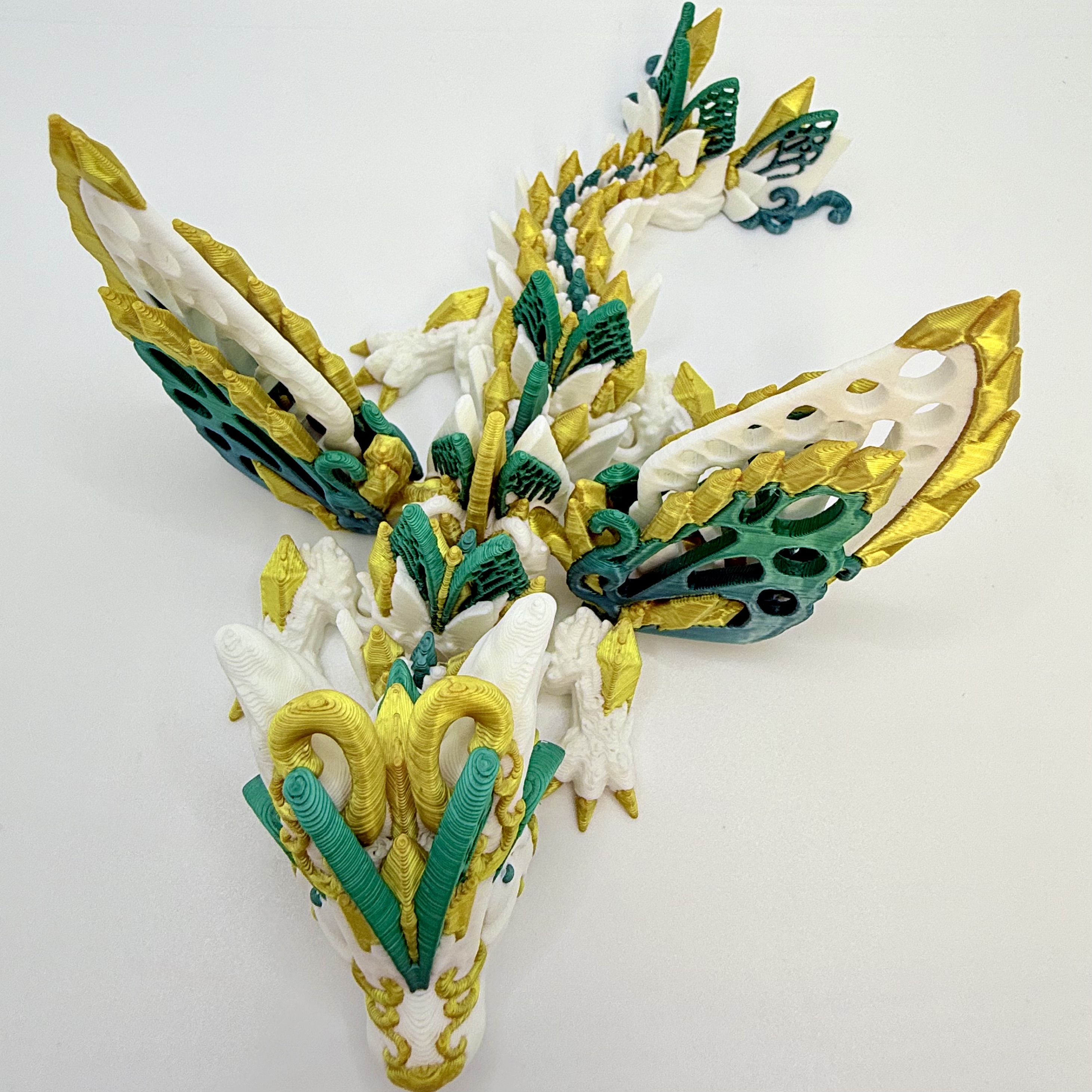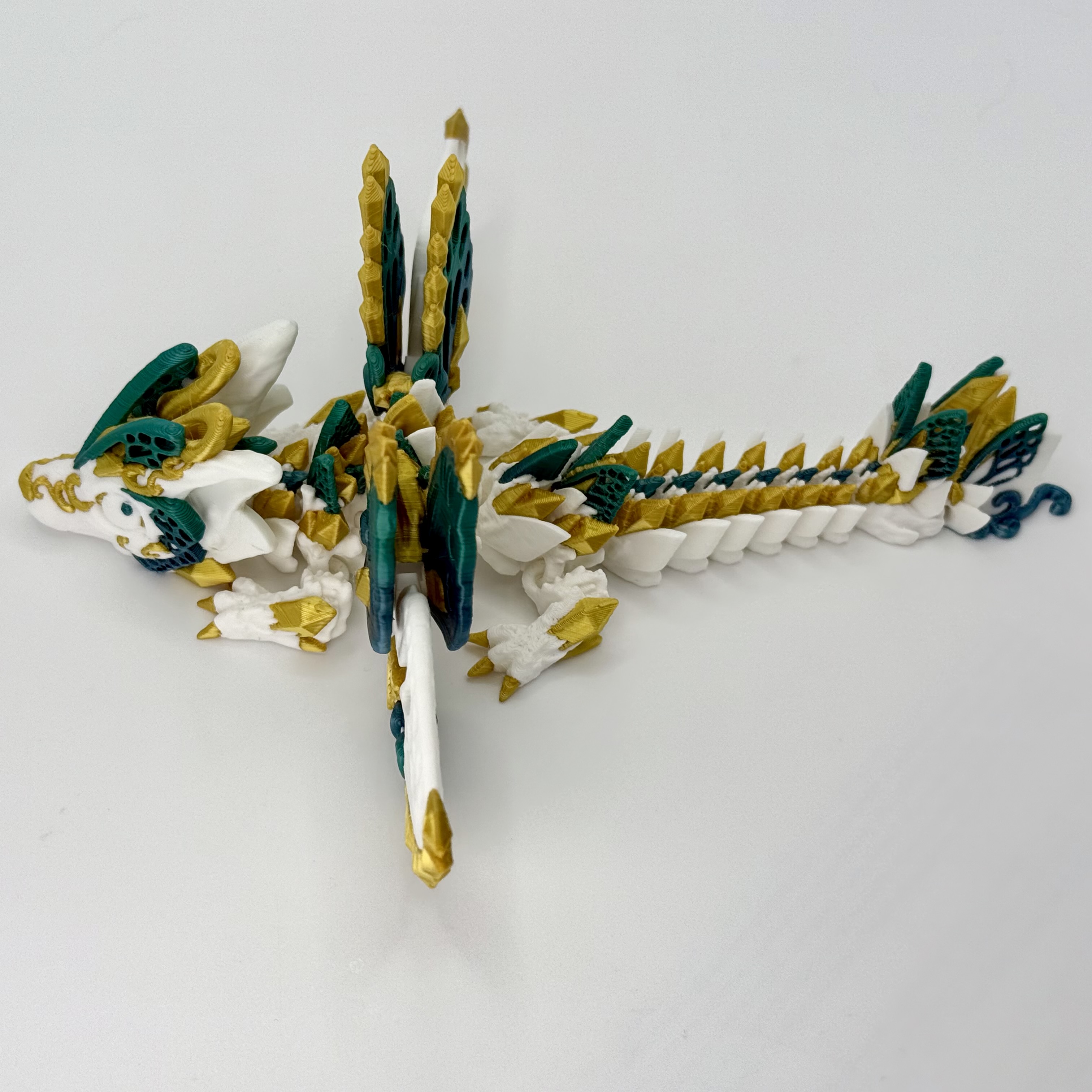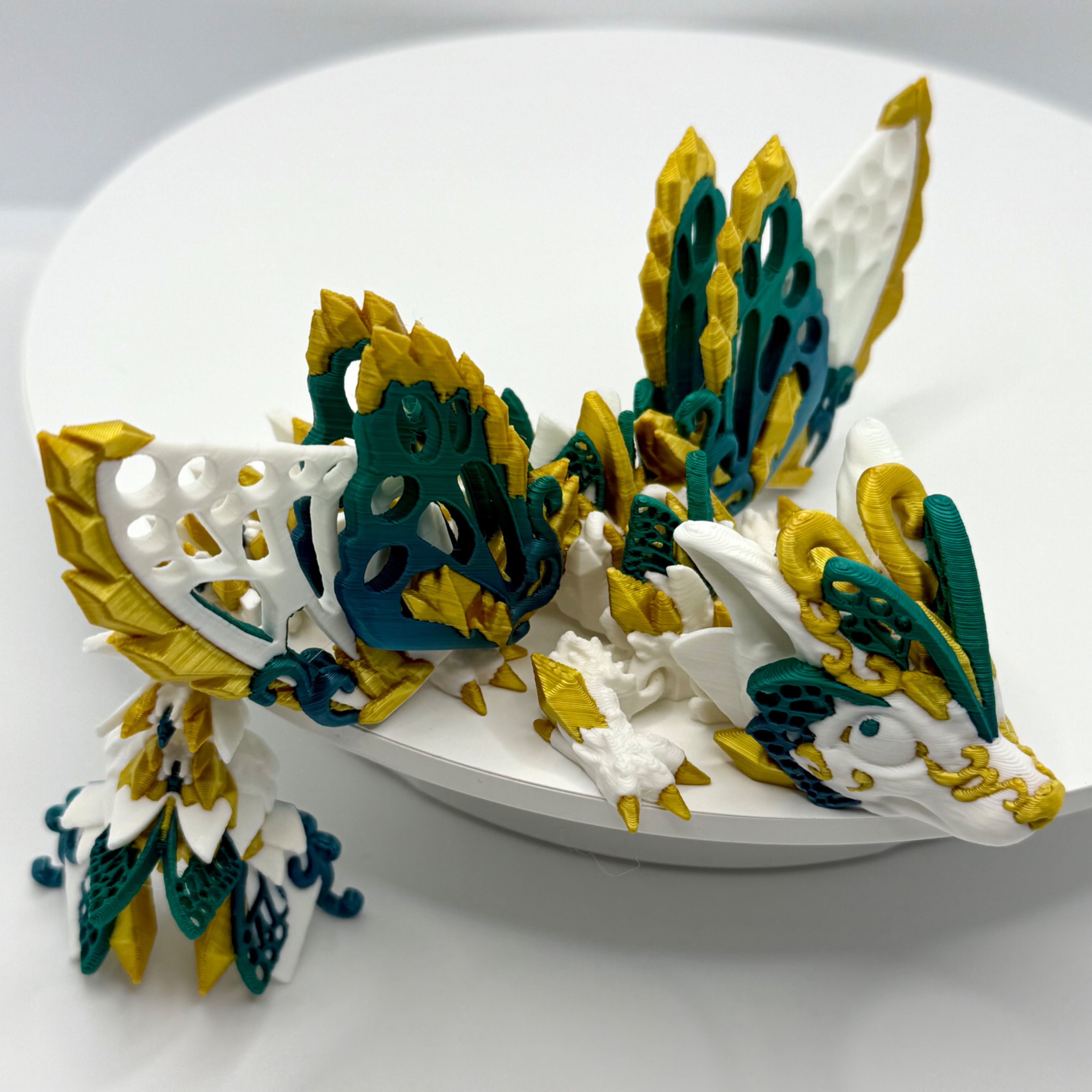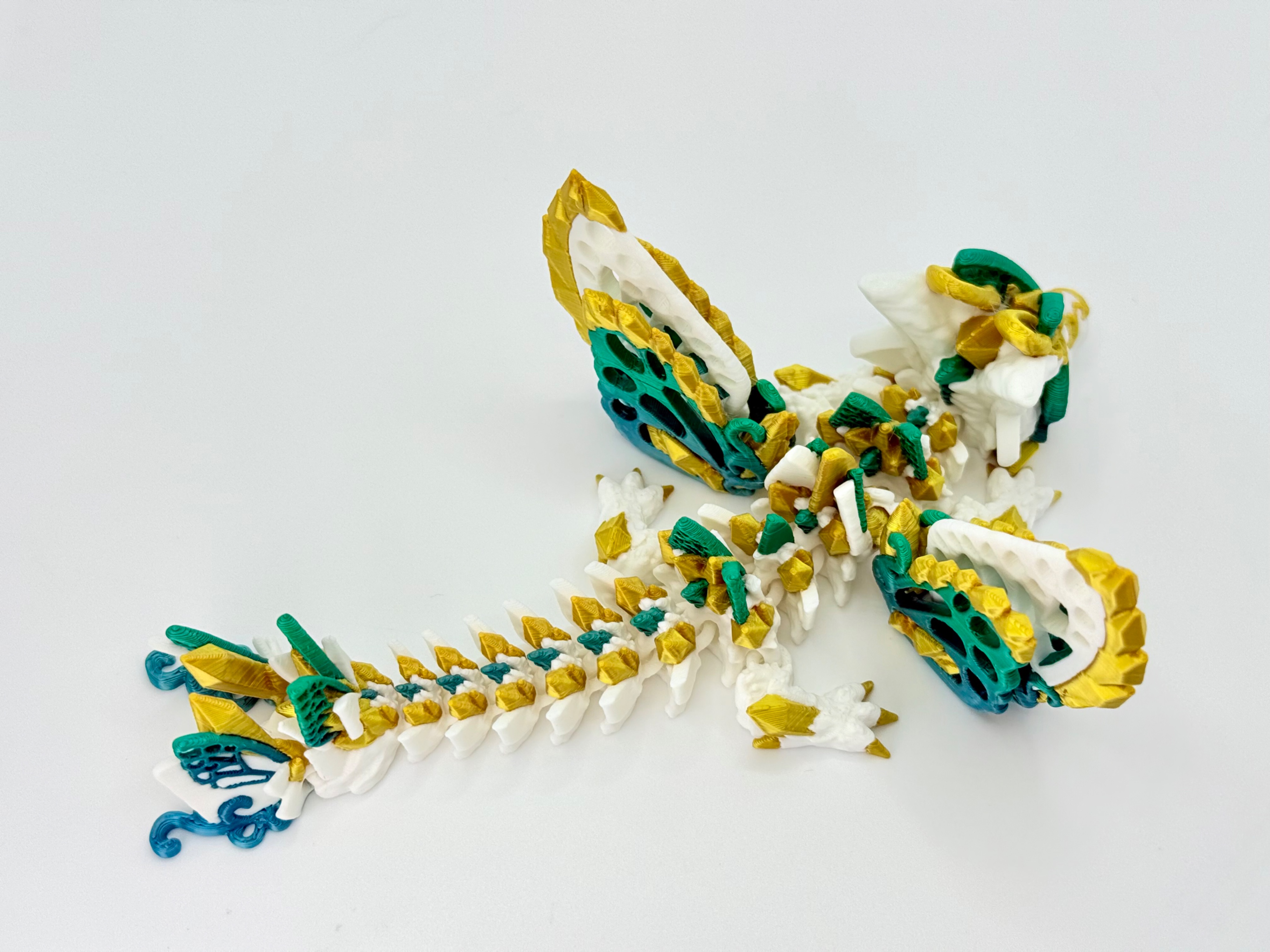 To nie tylko zabawka, ale również piękna dekoracja – świetnie prezentuje się na półce z książkami, biurku czy wśród kolekcji fantasy. Każdy egzemplarz jest unikatowy, ponieważ układ barw filamentu za każdym razem tworzy niepowtarzalny efekt gradientu.