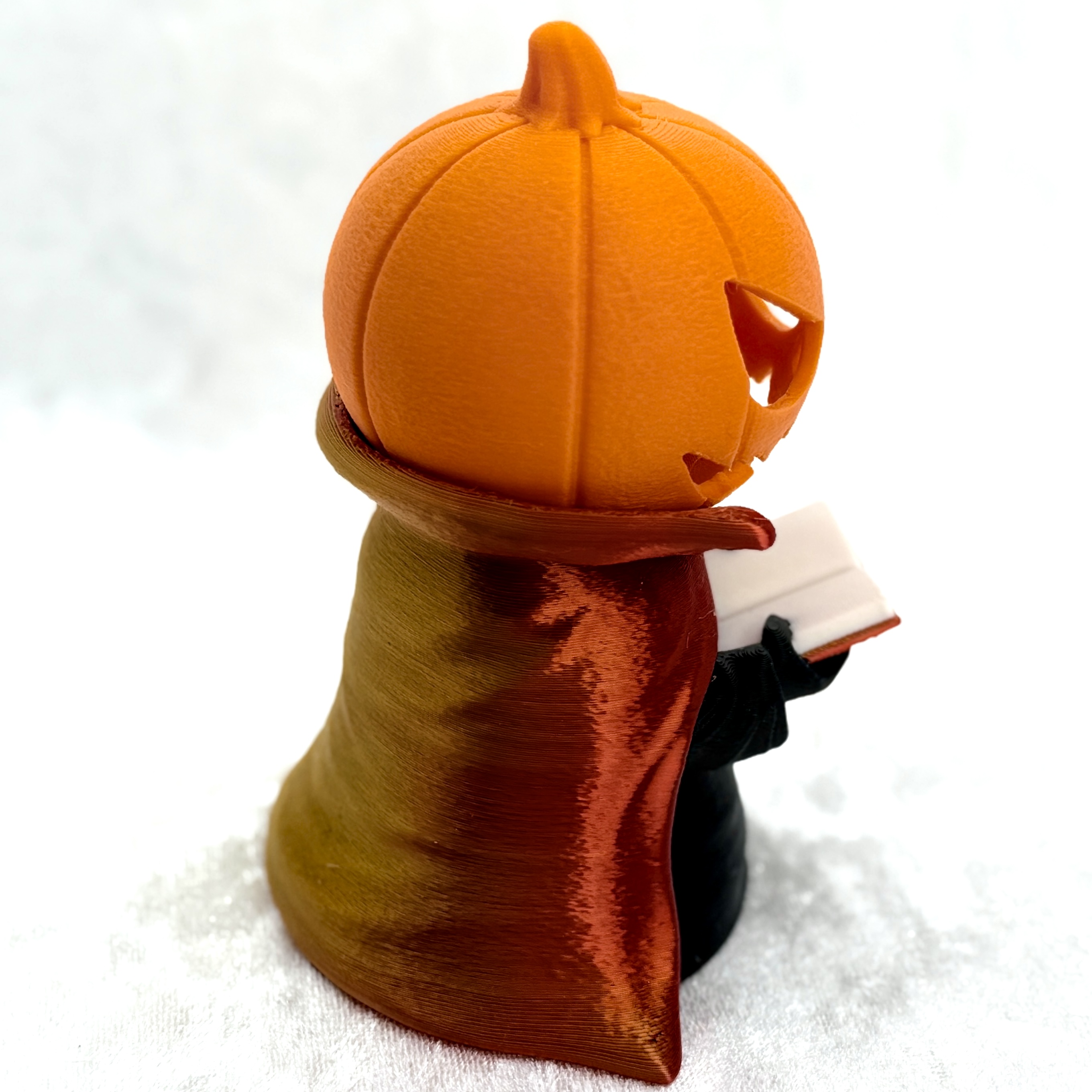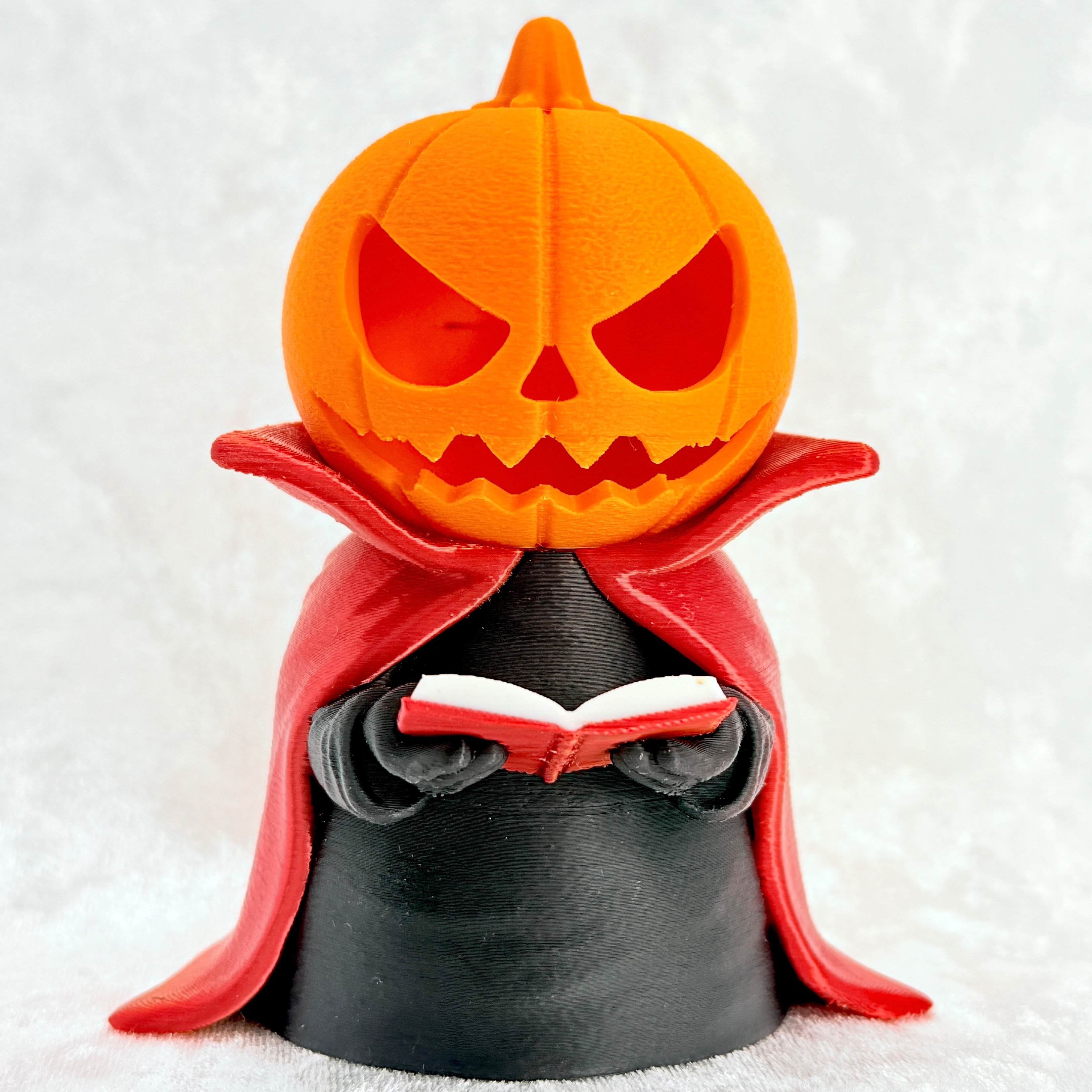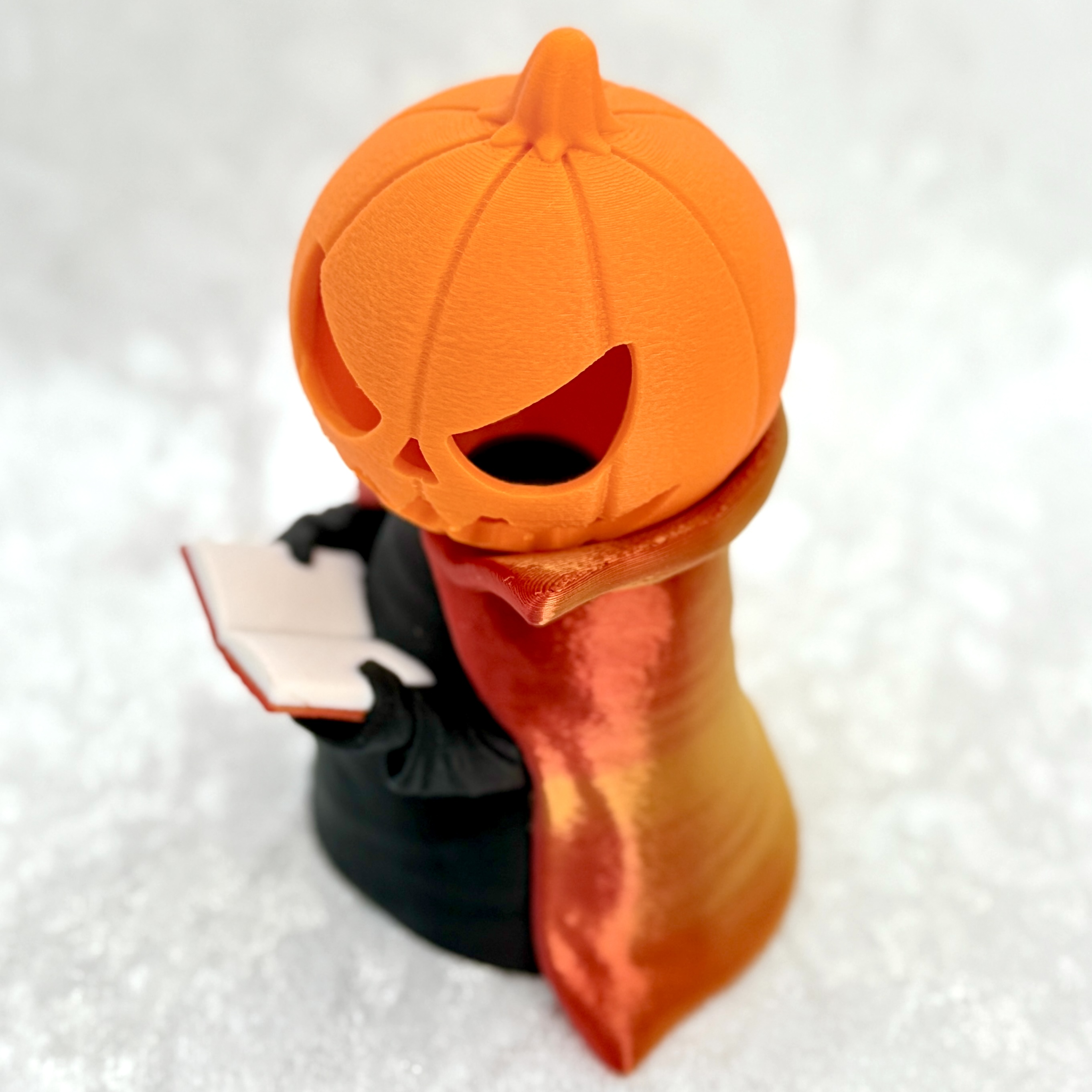 Każdy Jack – Czytający Lampion został wydrukowany w technologii 3D z dbałością o każdy detal – od faktury dyni po subtelne fałdy płaszcza. Idealny jako dekoracja na Halloween, prezent dla miłośników fantasy lub element nastrojowego wystroju jesiennego wnętrza.