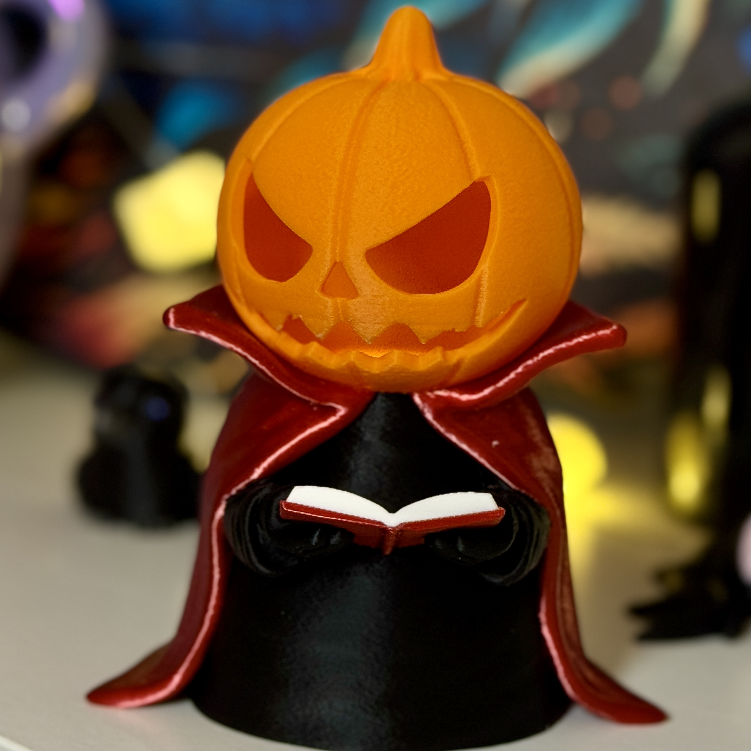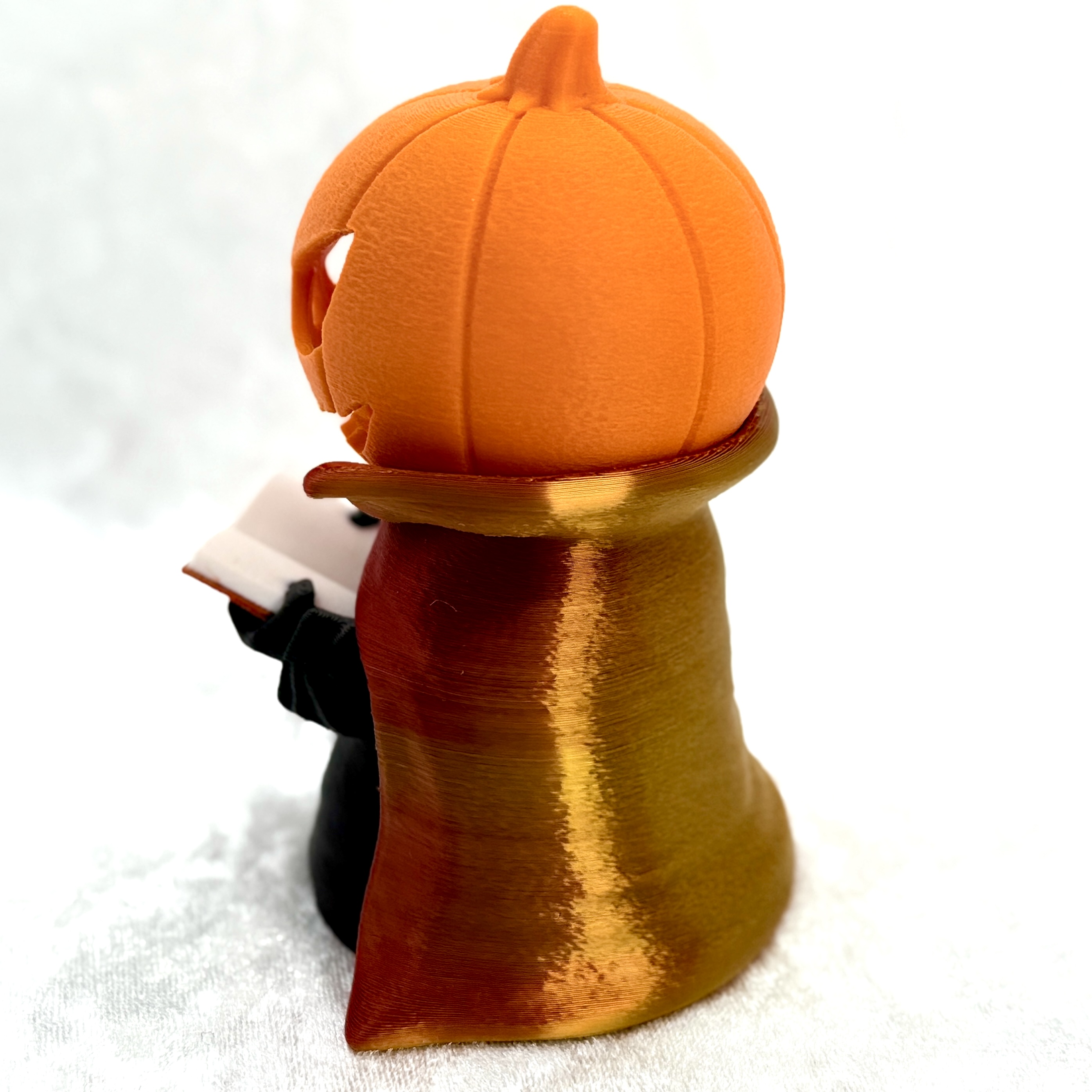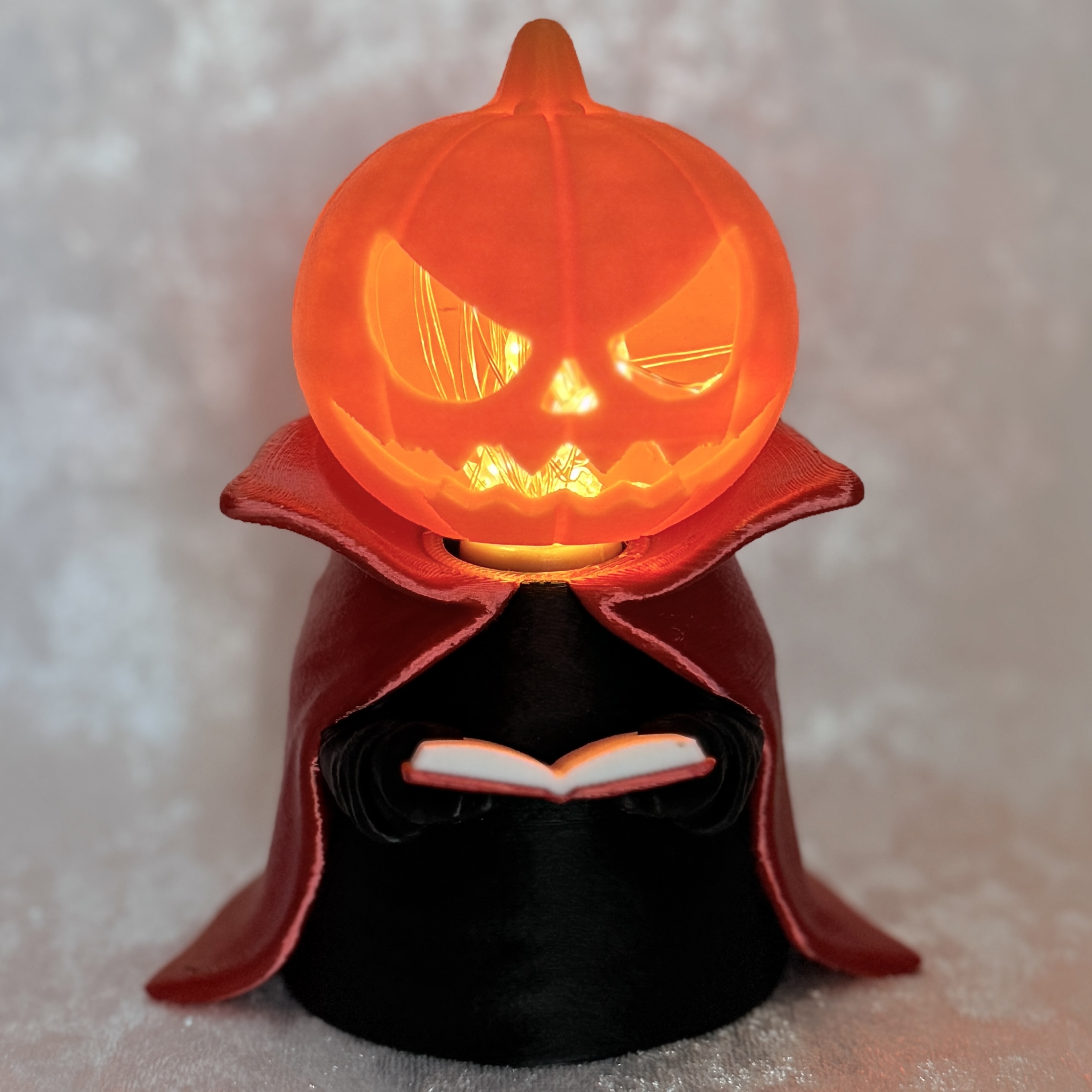 Każdy Jack – Czytający Lampion został wydrukowany w technologii 3D z dbałością o każdy detal – od faktury dyni po subtelne fałdy płaszcza. Idealny jako dekoracja na Halloween, prezent dla miłośników fantasy lub element nastrojowego wystroju jesiennego wnętrza.
