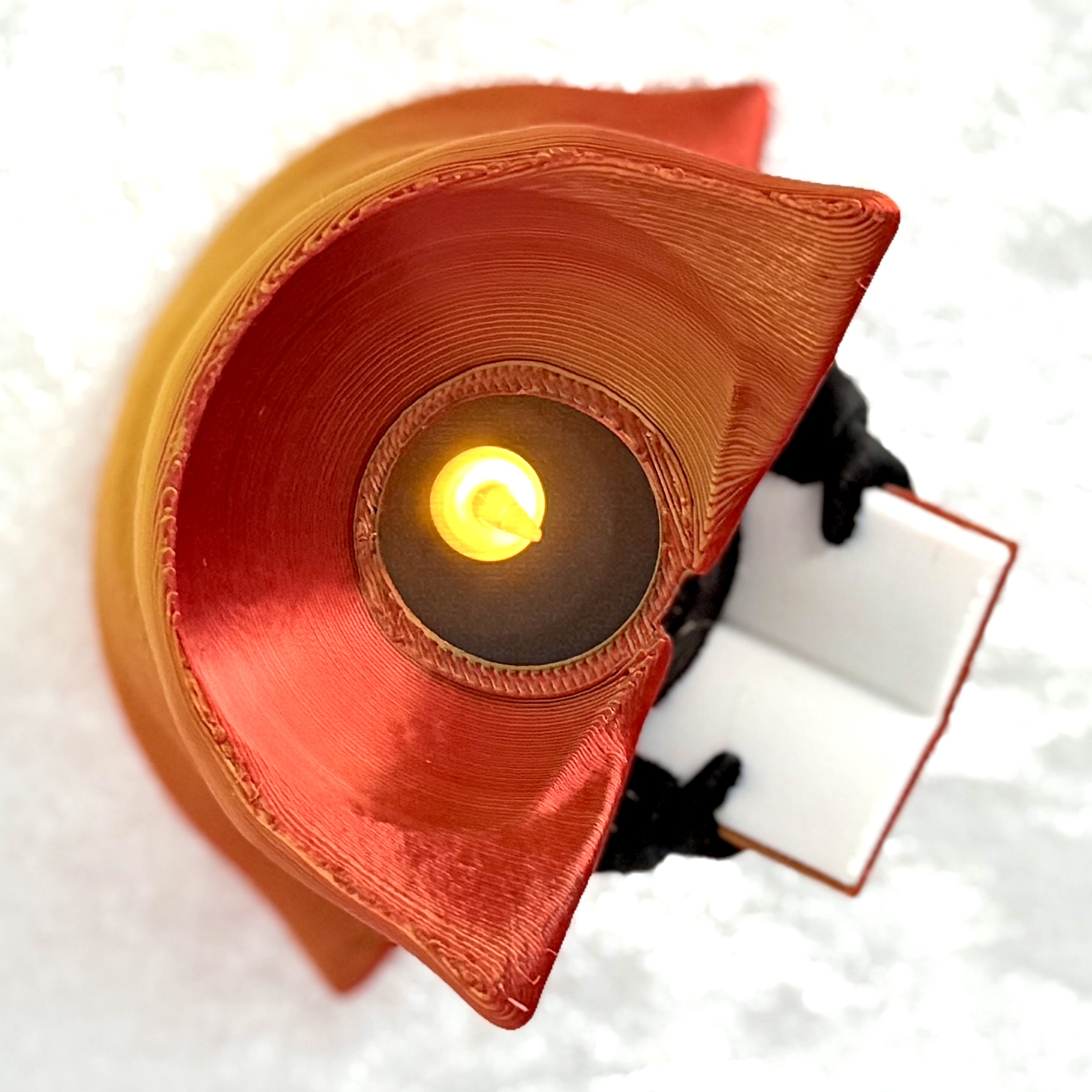 W jego podstawie ukryte jest miejsce na świeczkę LED typu tea-light (38 mm), która rozświetla postać od środka, nadając jej ciepły, magiczny blask.